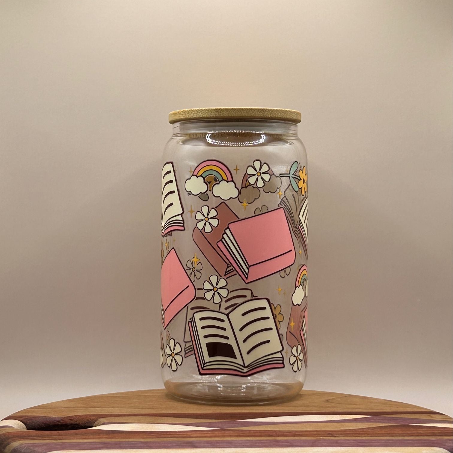 Enjoy your favorite beverage in style with our 16oz glass Cups, featuring elegant designs applied with UF-DTF. Ensuring vibrancy in color and scratch resistant designs that stay vivid and beautiful over time, even with frequent use. Complete with a bamboo lid and a reusable glass straw, this cup combines style, Function and sustainability. Durable, vibrant, and easy to clean.