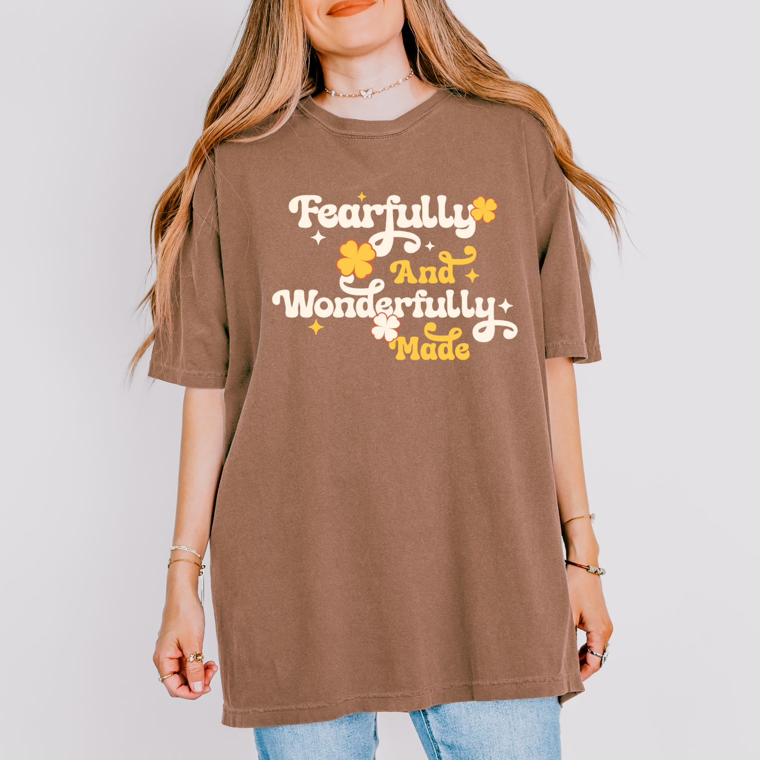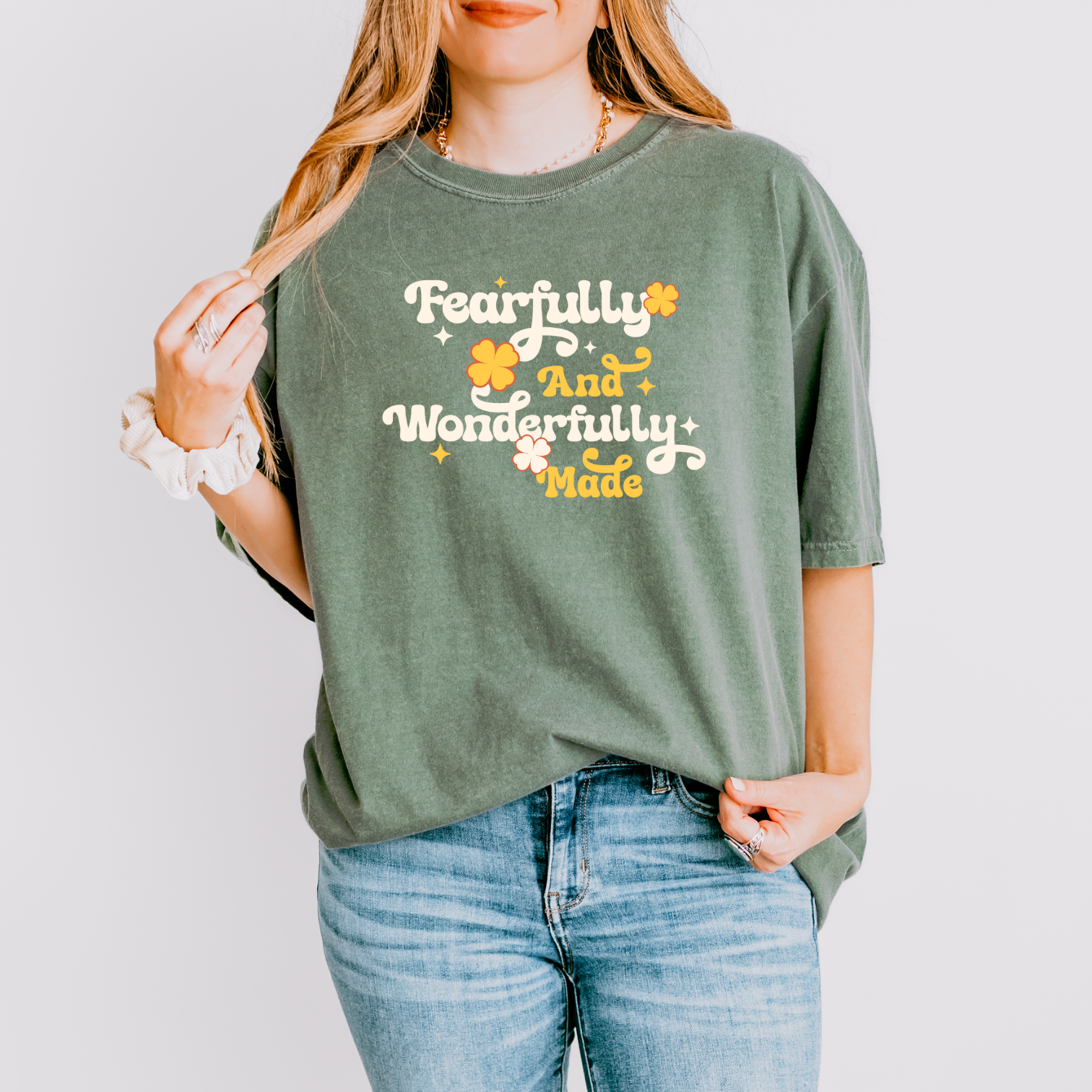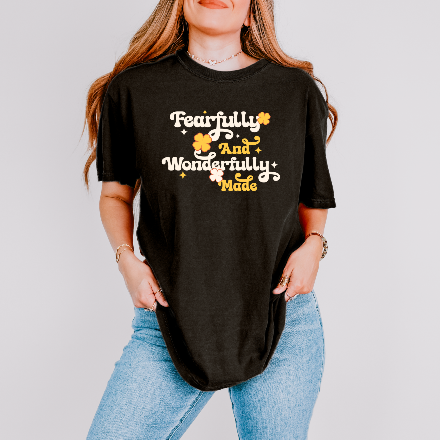 Our Fearfully and Wonderfully Made T-shirts blend style with meaning, offering a message of self-worth and divine inspiration.